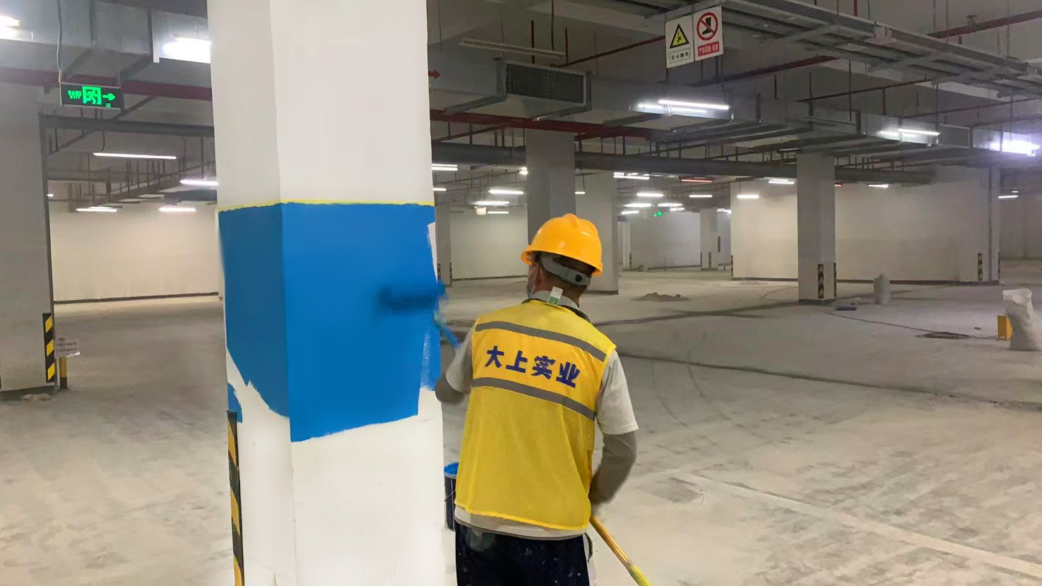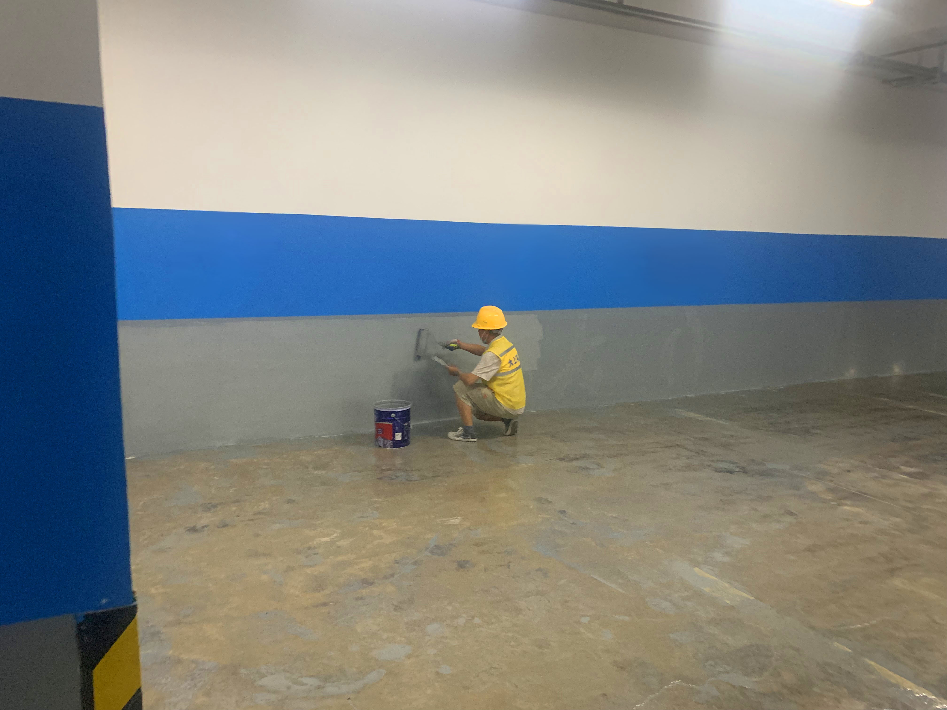 4萬多平方大型地下停車場水泥地面升級為環氧地坪地面工程,施工現場