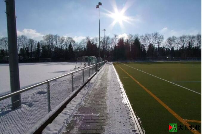 至于可以在冬季使用的人造草坪,德國曲棍球聯合會建議使用厚度為14毫米的全塑料草坪系統,且不做填沙處理。這樣的球場維護成本低,即使沒有安裝地暖系統,也容易在寒冷的天氣里清除積雪。填充沙子的人造草坪系統在潮濕和寒冷的溫度下會加速壓實,并且容易結冰,這大大增加了球員受傷的風險。