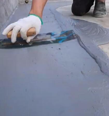 把調配好的涂料到在已經干燥的地面上,用鏝刀刮涂平整均勻。