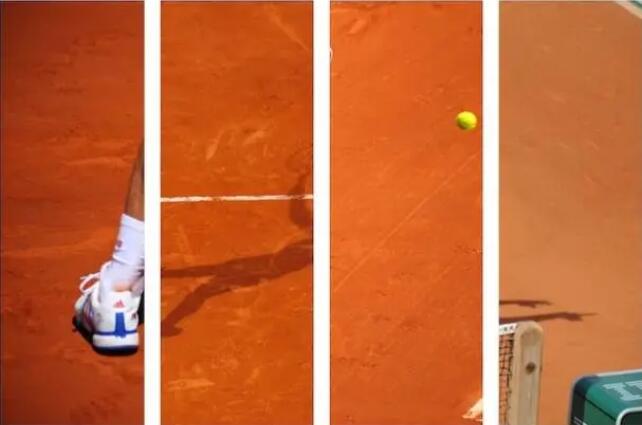由于場地表面松動的紅土,與硬地相比,球落在紅土場地上后,帶有上旋的球會更多的陷入的場地中,這樣一來場地會強化上旋的效果,得到了球彈跳更高的結(jié)果;其次,球與地面接觸后會以大角度離開地面。而在硬地球場上,球與地面接觸后,彈跳的角度則平緩很多。另外,由于表面松動的土層會隨時變化,當球落到不平整的地方會發(fā)生不規(guī)則彈跳。紅土球場的“變幻莫測”在于此。再補充一下,紅土球場的邊線為塑料材質(zhì),球落到線上球速還會變突然快。