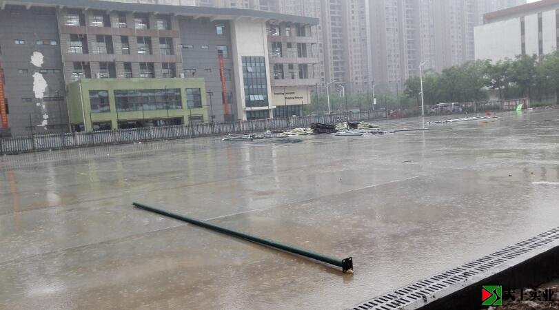 鋪地基的同時,邊上圍欄也在搭建。